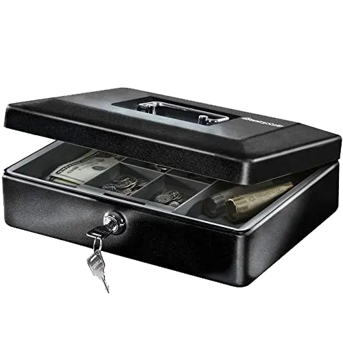 Keetoz Large 12 Inch Cash Box with Note and Coin Compartments
